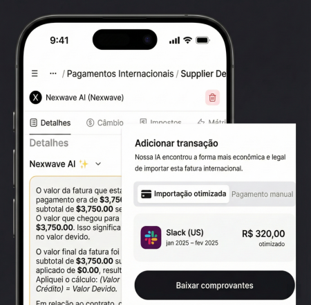 Com a Nexwave, sua empresa paga softwares estrangeiros em reais, recebe nota fiscal brasileira e reduz custos em até 50%. Tudo com segurança jurídica, automação e conformidade fiscal.