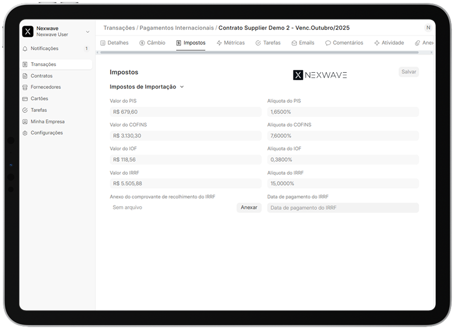 A Nexwave assume a responsabilidade pelos tributos de importação, garantindo previsibilidade, controle e menor exposição a riscos fiscais.